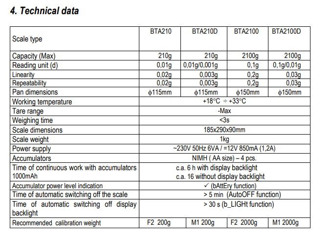 مشخصات فنی ترازو دیجیتال مدل AXIS BTA 2100D