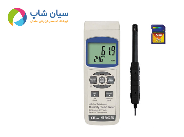 رطوبت : 5 ~ 95 %RH دما : 0 ~ 50C پشتیبانی پراب های J/K دمای نقطه شبنم از -25.3 الی 48.9 درجه سانتی گراد