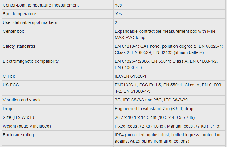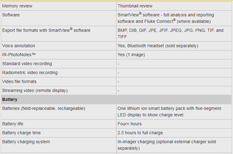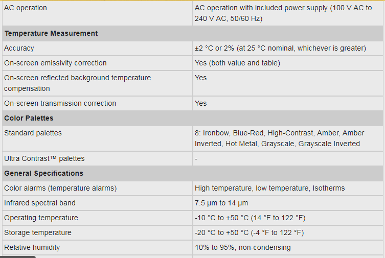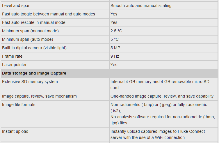 مشخصات فنی دوربین حرارتی ترموویژن فلوک مدل FLUKE TIS50 9HZ: