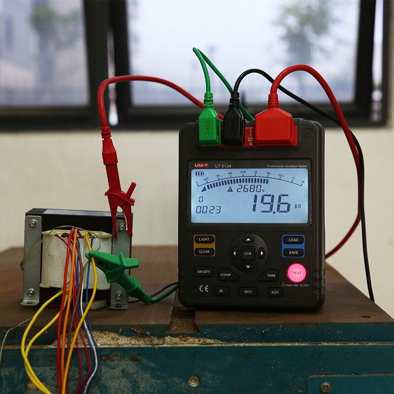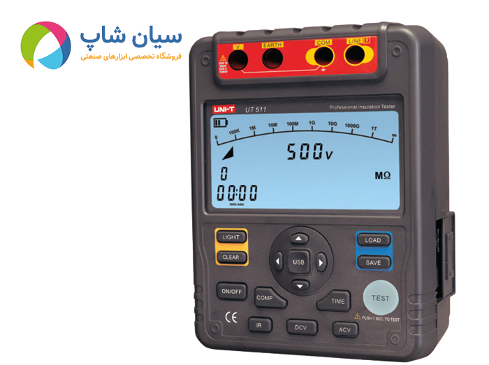 دستگاه میگر یونی تی مد ( UNI-T UT511 ( 1KV یکی از دستگاه های تست عایق موجود در بازار می باشد که دارای کیفیت فوق العاده و قابلیت اندازه گیری مقاومت عایق از0.1MΩ تا 10GΩ می باشد. ولتاژ تست این کد محصول در 4رنج 1000V/500V/250V/100V می باشد همچنین توانایی اندازه گیری ولتاژ متناوب را نیز دارد.