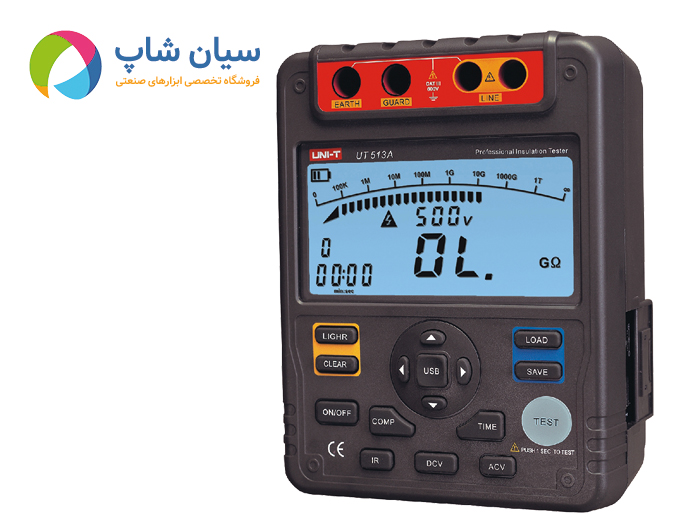 دستگاه میگر یونی تی مدل ( UNI-T UT513A ( 5KV یکی از دستگاه های تست عایق موجود در بازار می باشد که دارای کیفیت فوق العاده و قابلیت اندازه گیری مقاومت عایق از0.5MΩ تا 1000GΩ می باشد. ولتاژ تست این کد محصول در 4رنج 5000V/2500V/1000V/500V می باشد همچنین توانایی اندازه گیری ولتاژ متناوب را نیز دارد.