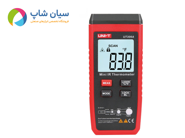 ترمومتر (حرارت سنج) لیزری کوچک یونیتی مدل UT-306 با هدف گرفتن تک لیزر قابلیت اندازه گیری دما را بدون تماس با سطح دارد. این دستگاه قبلیت اندازه گیری دما در محدوده -35 تا +300 درجه سانتی گراد را دارد. UT306A یک دماسنج بدون تماس با سطح است. طراحی مینیاتور این دستگاه برای حمل و جابجایی و نیازهای روزانه ی اندازه گیری دما مناسب است. UT306A طراحی شده است تا بدون دخالت عوامل محیطی، دقیق خواندن دما در محیط های مختلف را تضمین میکند.
