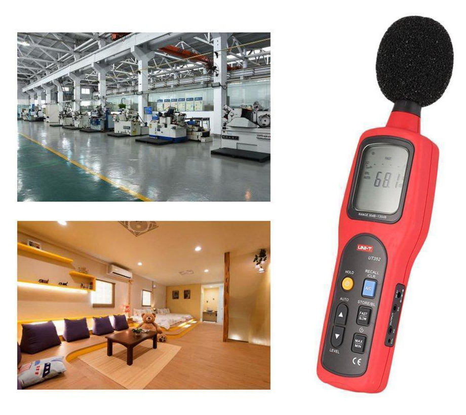 صوت سنج دیجیتال UT-352با دقت بالا dB 1.5 برای اندازه گیری صوت در محدوده 30 تا 130 دسی بل با صفحه نمایش بزرگ دیجیتال با نور پس زمینه، سازماندهی شده برای استفاده در زمینه هایی از جمله پروژه های کنترل پارازیت صوت، کنترل کیفیت، اندازه گیری نویز محیط، در کارخانه ها، دفاتر، مدارس، حمل و نقل، منازل و برای پیشگیری و درمان بیماری ها در پزشکی استفاده میشود . علاوه بر این، دستگاه صوت سنج UT-352 دارای یک logger اطلاعات است که امکان ذخیره تا 64 رکورد سوابق اندازه گیری را فراهم می کند.