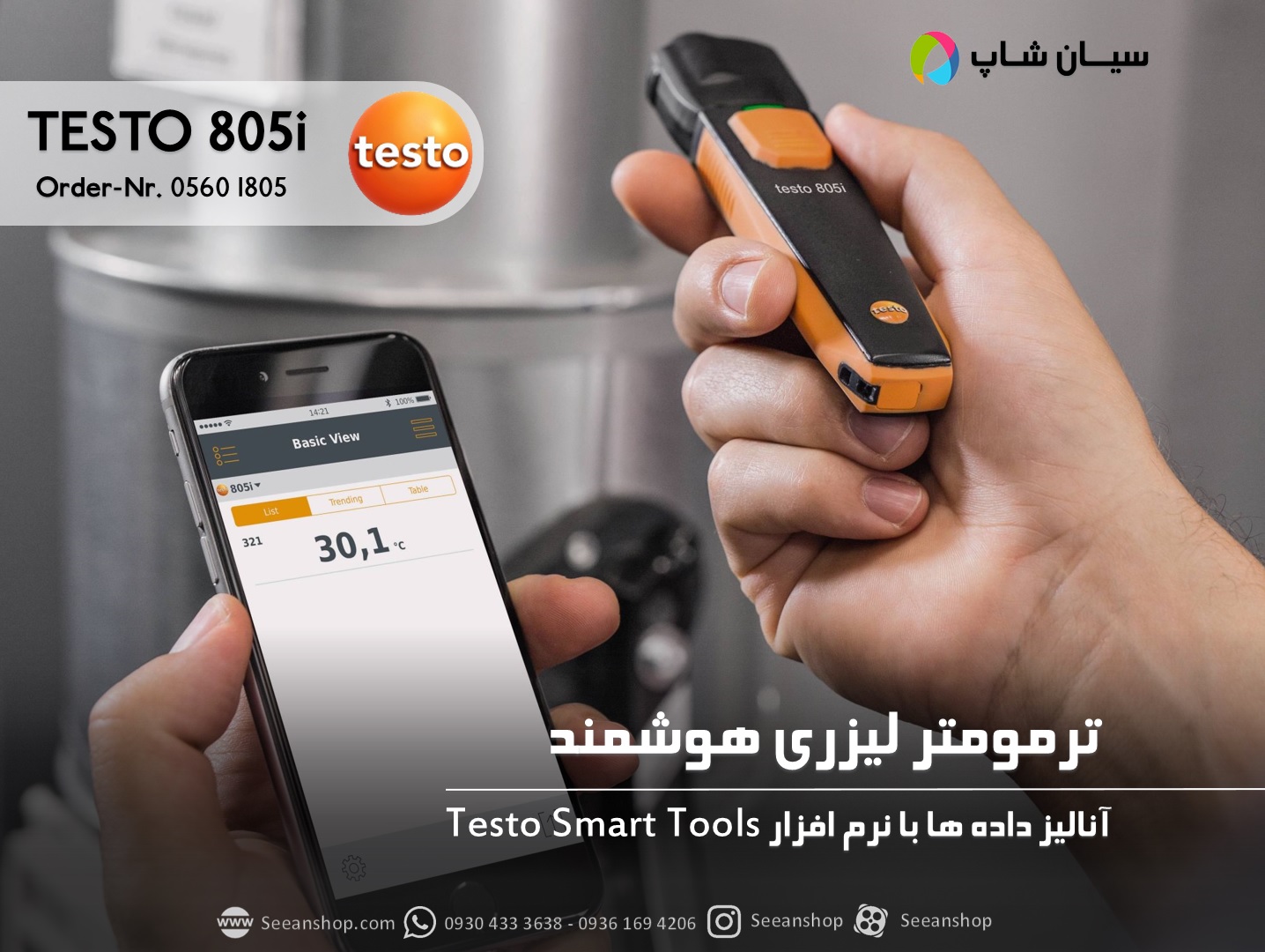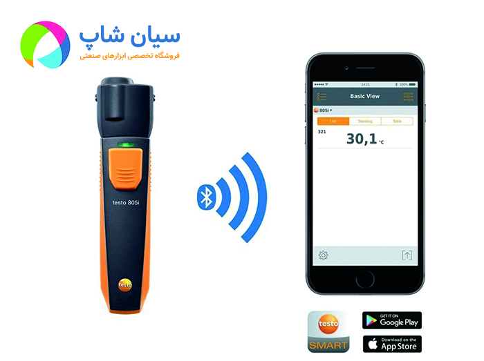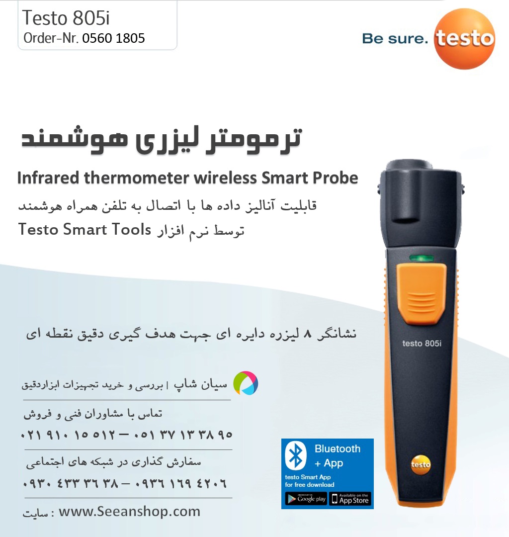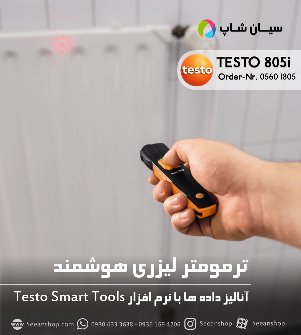 ترمومتر لیزری تستو مدل TESTO 805i یک دماسنج غیر تماسی است که قابلیت اندازه گیری دما بین -30 تا250 درجه سانتی گراد را دارد. این دستگاه قابلیت اتصال به تلفن های هوشمند و تبلت را داراست که قابلیت تجزیه و تحلیل داده ها و ارسال آن ها را در فرمت های مختلف برای کاربران به آسان ترین و سریع ترین شیوه ممکن می سازد.