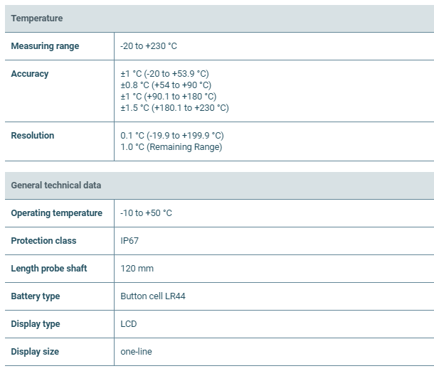 مشخصات فنی مینی ترمومتر ضد آب مواد غذایی تستو:
