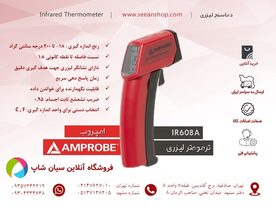 | مشخصات فنی و قیمت خرید دماسنج لیزری ارزان مادون قرمز Amprobe IR608A |