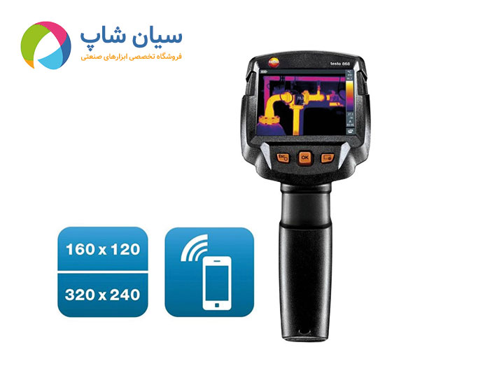 ترموویژن دوربین حرارتی تفنگی تستو TESTO 868 یک دوربین حراتی هوشمند با طراحی ارگونومیک و پرتابل دارای فناوری حرفه ای در اندازه گیری وکاربری آسان با وضوح مادون قرمز 160 x 120 pixels و حمل آسان به انجام فعالیت های روزانه پیمانکاران و تکنسین ها با عملکردی سریع و بهینه در ایجاد تصویر حرارتی مادون قرمز بدون خطا و قابل مقایسه کمک می کند.