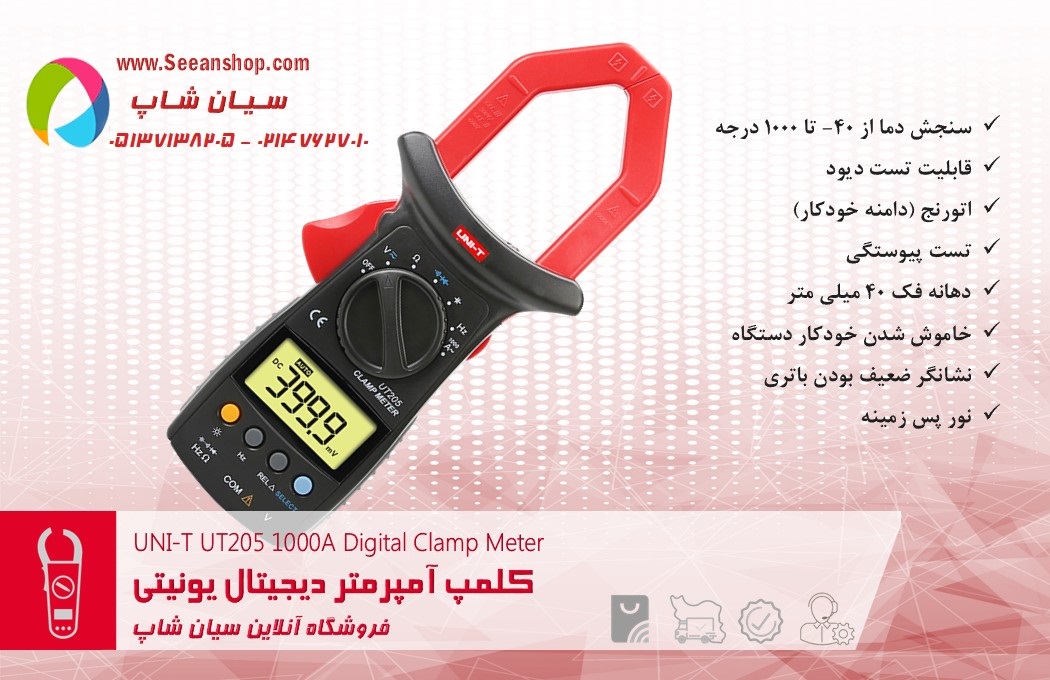 نقد و بررسی، قیمت و خرید اینترنتی کلمپ آمپرمتر دیجیتالی AC یونیتی UNI-T UT205