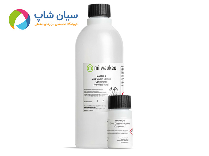 محلول کالیبراسیون اکسیژن صفر MA9070 از دو جزء برای استفاده در کالیبراسیون اکسیژن متر Milwaukee MW600 DO تشکیل شده است. این کیت شامل محلول های MA9070-1 و MA9070-2 (حاوی آب دیونزه شده ) است . این محصول را می توانید از فروشگاه آنلاین سیان شاپ تهیه نمایید.