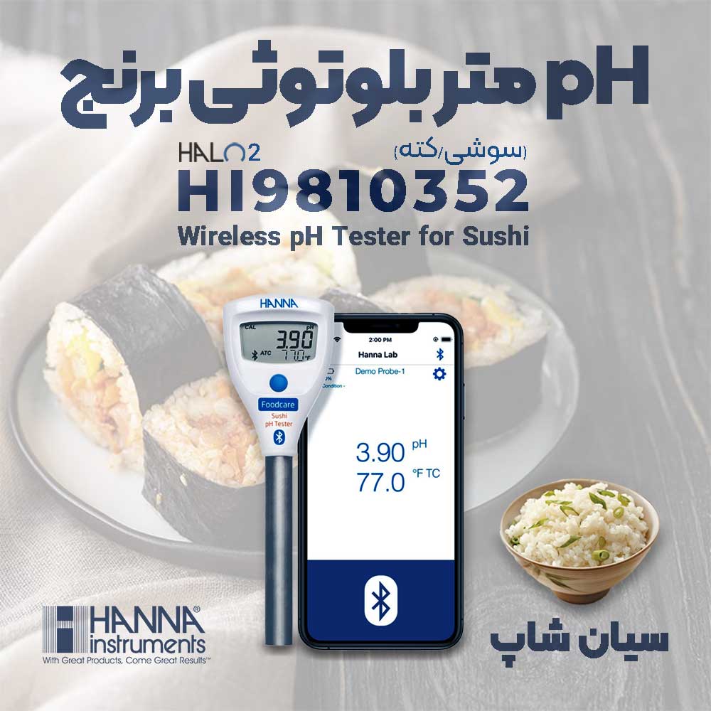 ph متر بیسیم مخصوص برنج سوشی/کته هانا سری HALO2 مدل HANNA HI9810352 از تستر های قلمی نسل جدید این کمپانی که با قابلیت بلوتوث امکان اتصال به نرم افزار HANNA LAB را فراهم می کند تا کاربر بتواند اطلاعات به دست آمده از آزمایشات خود را در لحظه مشاهده و مدیریت کند.
