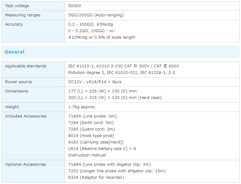 مشخصات فنی تستر عایق کابل | میگر 5000 ولت کیوریتسو مدل KYORITSU 3122B
