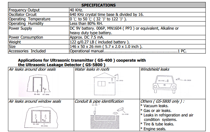 مشخصات فنی ترانسمیتر جهت نشت یاب گاز لوترون مدل Lutron GS-400
