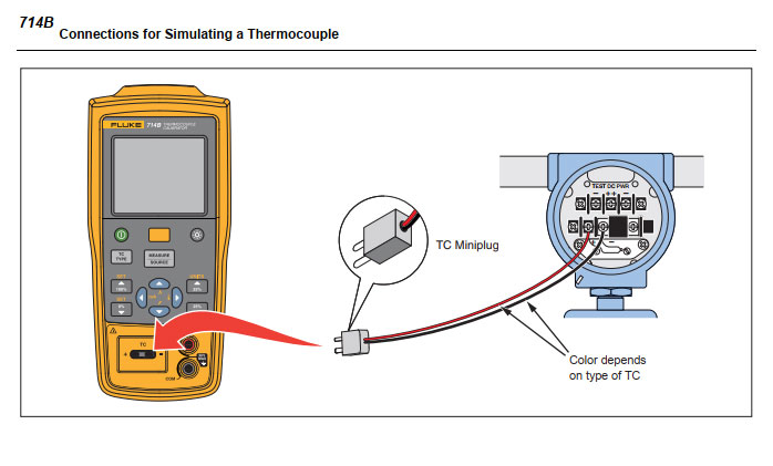 کالیبراتور ترموکوپلی فلوک 714B ، از 17 ترموکوپل استاندارد E, N, J, K, T, B, R, S, L, U, C, BP, XK, G, D, P, M ، که برای استفاده میتوانید مد اندازه گیری را انتخاب و با فشردن دکمه TC TYPE در حالت اندازه گیری دما با ترموکوپل قرار بگیرید و در صورت فشردن مجدد میتوانید هر کدام از 17 مدل ترموکوپل یا mV را انتخاب کنید.