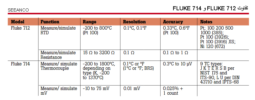 دستگاه مشابه این مورد، کالیبراتور FLUKE 712B است که ترموکوپلی نیست و دما را با سنسورهای RTD اندازه گیری میکند. تفاوت این دو کالیبراتور در تصویر زیر مشخص است :
