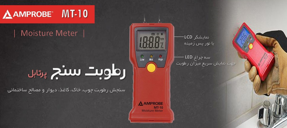 رطوبت سنج چندکاره دیجیتال امپروب Amprobe MT-10 یک رطوبت سنج حرفه ای و پرکاربرد در محیط های ساختمانی و نجاری ها جهت اندازه گیری رطوبت چوب ،خاک، بتن و مصالح ساختمانی می باشد. سنسور رطوبت سنج چوب و مواد ساختمانی به تعیین میزان آسیب دیدگی ناشی از رطوبت دیوار های ساختمان و بررسی رطوبت سقف ها، صفحات بتنی و کف پوش ها هنگام نصب کمک می کند.