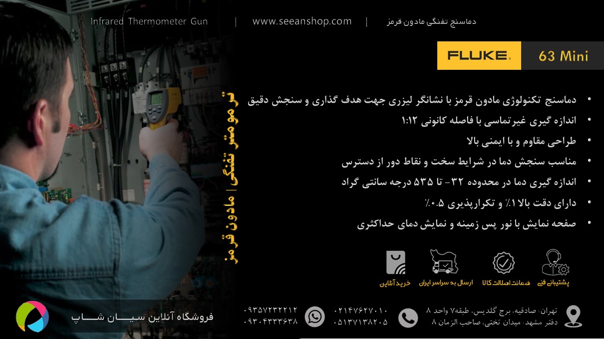 جدول مشخصات فنی ترمومتر دیجیتال صنعتی فلوک Fluke 63 Mini