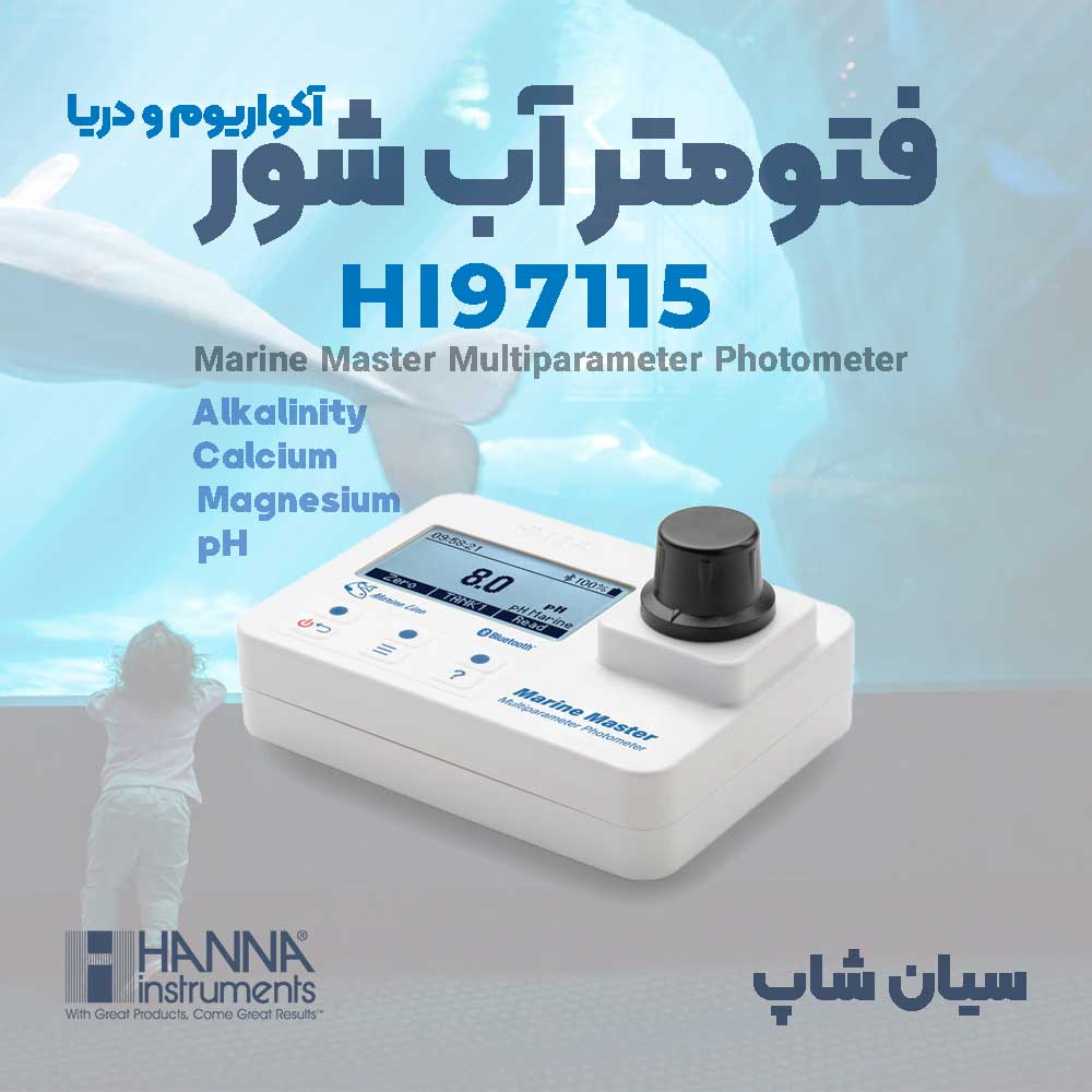 فتومتر چندکاره آب شور آکواریوم و دریا HANNA HI97115 از تجهیزات مولتی پارامتر شیمایی بلوتوثیِ پرتابل و رومیزی هانا آمریکا که با استفاده از سیستم نوری پیشرفته و حرفه ای قادر به تعیین شاخص های pH، قلیاییت، آمونیاک، کلسیم، منیزیم، نیترات، نیتریت و فسفات، جهت کنترل کیفیت آب آکواریوم ها و سنجش های آزمایشگاهی و میدانی زیست محیطی کاربرد دارد.
