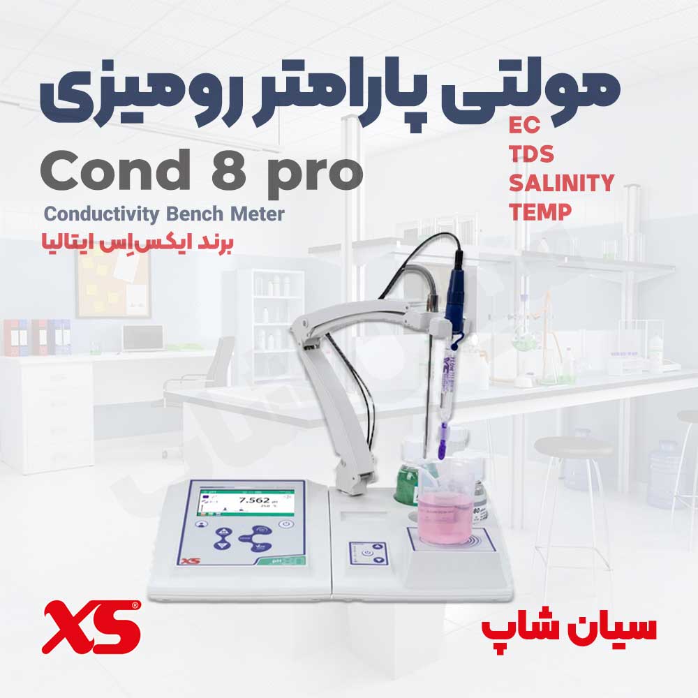 ECمتر چندکاره رومیزی آزمایشگاهی XS مدل COND 8 pro تجهیزی اقتصادی در عین حال با امکانات بسیار است که با اندازه گیری شاخص های هدایت الکتریکی EC، سختی TDS، شوری NaCl و دما TEMP نیاز های کاربران آزمایشگاهی و مهندسین حوزه کنترل کیفیت آب را برآورده می کند.
